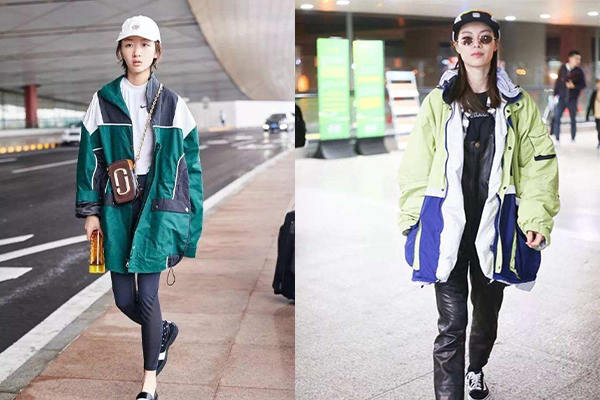 超大碼的沖鋒衣如果搭配不好就會顯得過于臃腫,那么一定要記住上寬下窄的原則。“短款+高腰”是永遠不可拆散的好搭檔,瞬間可以把上下身比例拉成3:7,同時記得選擇沖鋒衣時,也要get住這一點哦,拒絕合身形的,大大的版型才是王道,下身要搭配利落的小腳褲才有型,避免過于臃腫肥大的搭配。如果這時再踩一雙有跟的踝靴,你就是街拍的焦點。將領口拉大,秀一把鎖骨。當然如果下身搭配超短褲露出大長腿,也可以達到拉長身形的效果。