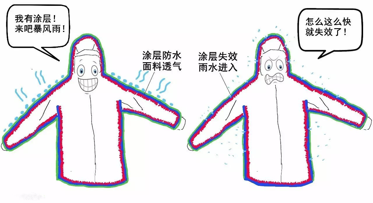 涂層損壞后衣服就會(huì)進(jìn)水。