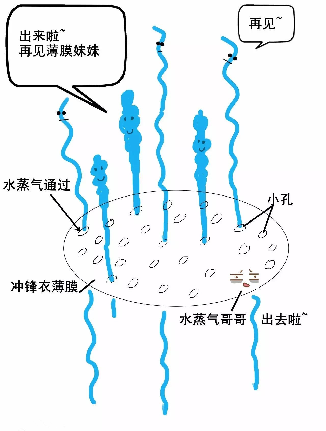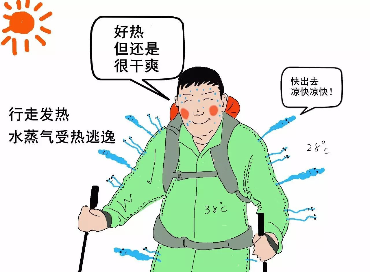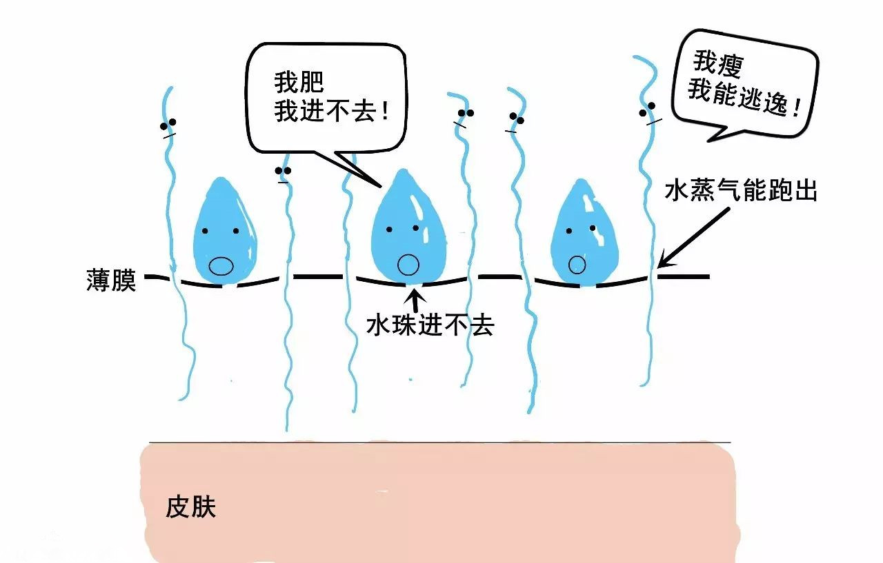 2)因?yàn)樗魵獗人樾『芏啵魵夂芗?xì)小,可以鉆過(guò)沖鋒衣薄膜的小孔排出。