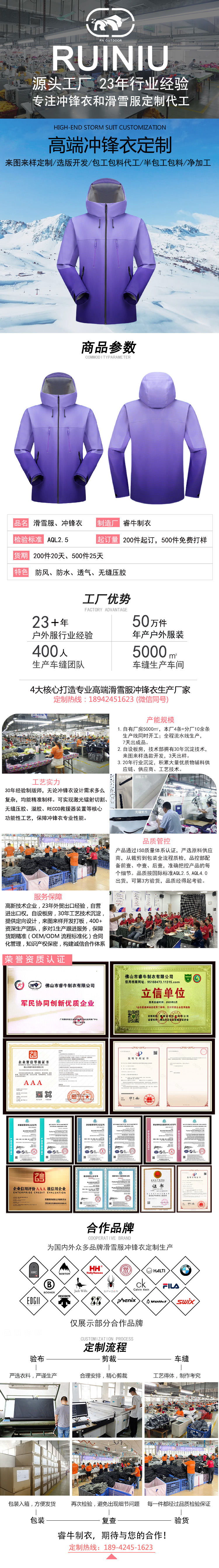 專注高端沖鋒衣生產23年,包工包料 凈加工