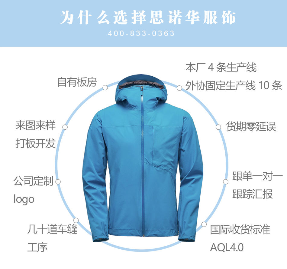 思諾華服飾—防水透氣單層沖鋒衣貼牌代工