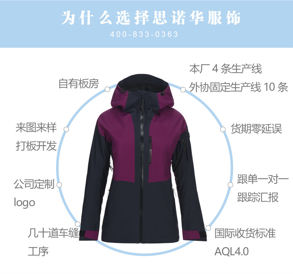 思諾華服飾—三合一沖鋒衣定做廠家定制生產壓膠沖鋒衣
